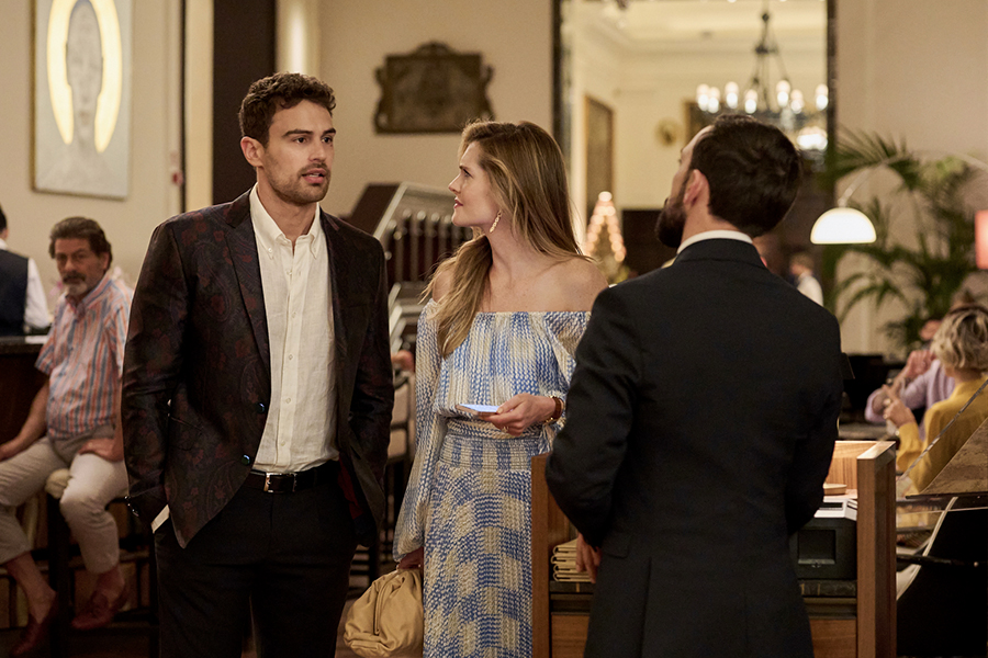 Harper watches Cameron and Daphne smooch as Daphne’s Louis Vuitton OntheGo Tote sits on the ground. (HBO)