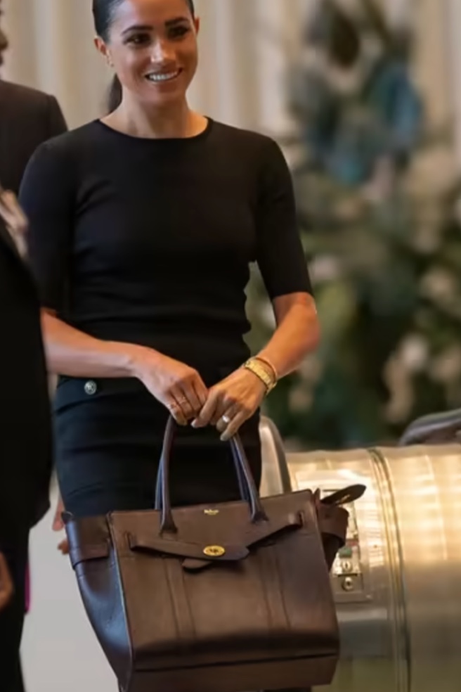 Meghan Markle holds a Mulberry satchel. (Hello)