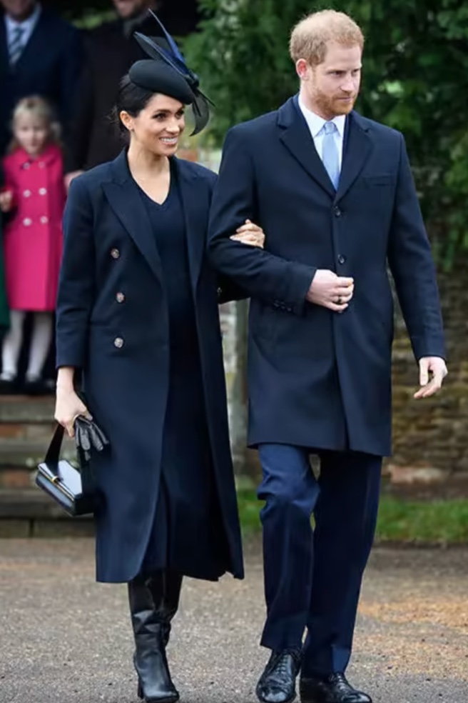 Meghan Markle smiles for the camera with a Celine Triomphe bag on her shoulder. (Wire)