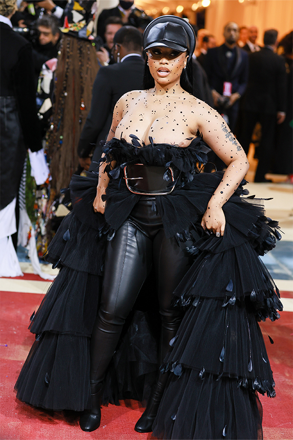 Nicky Minaj makes a bold statement in her full Burberry look. (Theo Wargo/WireImage)