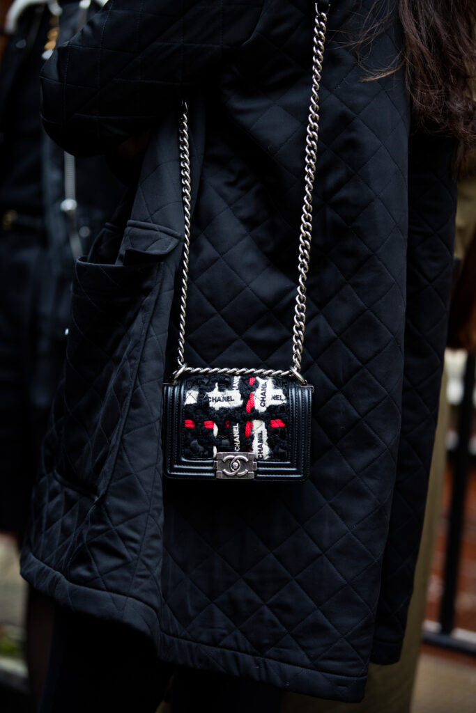 A guest with a Boy Chanel bag outside 16Arlington.