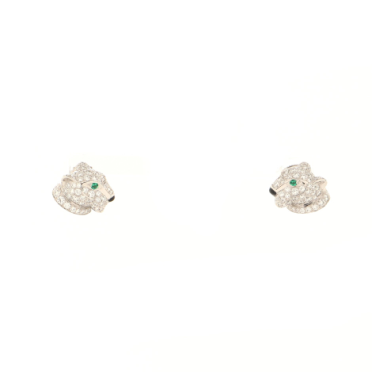 Panthère De Cartier Stud Earrings 18K White Gold and Diamonds with Emeralds and Onyx