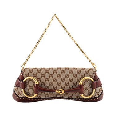The Horsebit Chain Clutch was first introduced in the 1970s and quickly became a popular style for Gucci. It has been reinterpreted over the years in a variety of materials, sizes, and colors to suit changing fashion trends and market needs. Faced with the peak in popularity of other Y2K bags (most notably, Louis Vuitton monograms and Fendi Baguettes), Ford’s take on the elongated clutch didn’t quite hit “It Bag” status after appearing in his Fall 2003 collection. Nevertheless, it became a bestseller item for Gucci. A short time afterward, the bag was featured in the Fall 2003 campaign, shot by no other than Mario Testino. 2011 saw designer Frida Giannini incorporate the bag into the G. Gucci Firenze 1921 collection in honor of the brand’s 90th anniversary. Most recently, the bag resurfaced in the Italian brand’s Fall 2023 ready-to-wear runway show, where the design team (sans creative director) drew inspiration from the past thirty years of the label’s history to bring forward new versions of the iconic handbag.