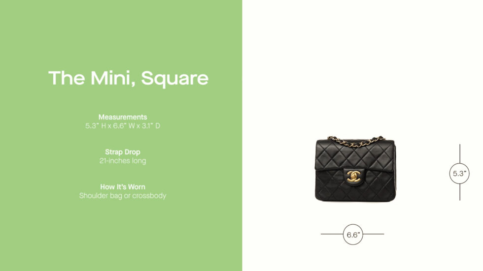 In case you didn’t know, it wasn’t Coco Chanel, but Karl Lagerfeld debuted the first Chanel Classic Flaps — defined by their leather and chain strap, signature interlocking C gold hardware turnlock, diamond quilt stitching, and its flap — in his inaugural season at Chanel in 1983. The Chanel mini square Classic Flap is among the smallest of the Chanel Classic Flap bag sizes. The Chanel mini square bag is nice and compact, and fits everything you need for a night out — keys, lipstick, wallet, and phone. The Chanel mini square bag can be worn as a shoulder or crossbody bag.
