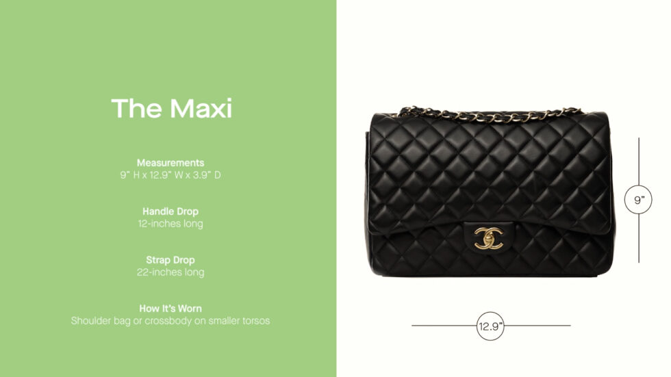 For those of who think bigger is better, and if oversized bags are more your thing, there’s the maxi Chanel Classic Flap bag. The Classic Flap maxi is the largest of the Chanel Flap bags, and can carry everything you need, whether it’s snacks for the kids, party favors, or a makeup bag. Use it primarily as a shoulder bag, but it also works as a short crossbody.