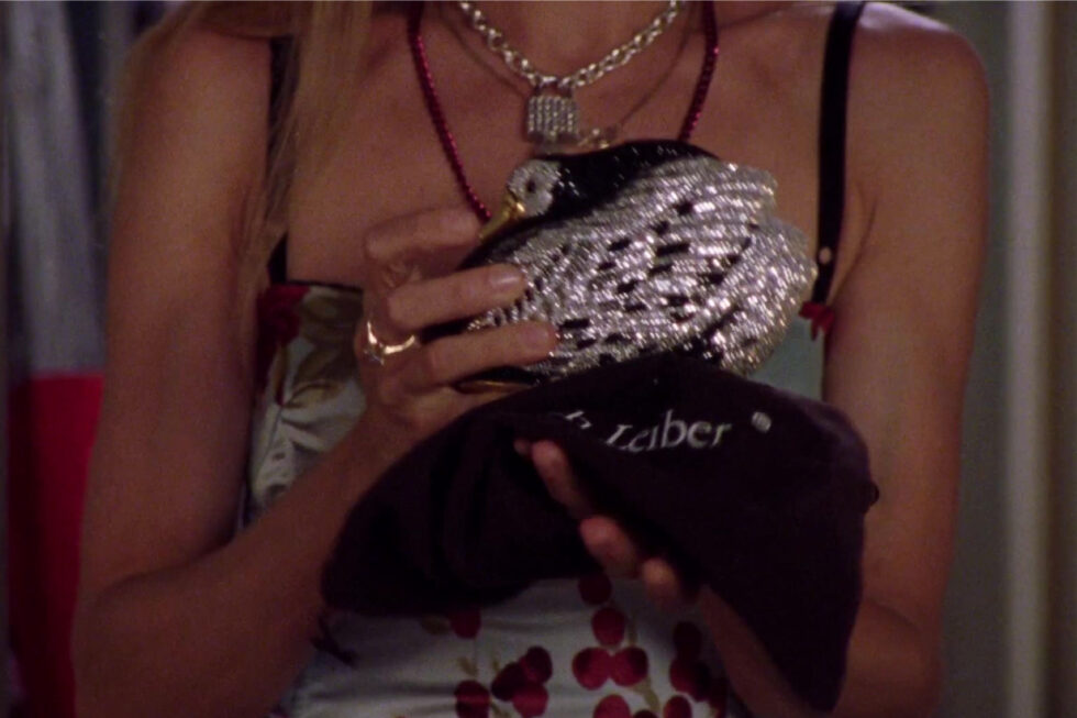 Carrie Bradshaw and the Judith Leiber Couture Swan Evening Bag. Courtesy of Product Placement Blog.